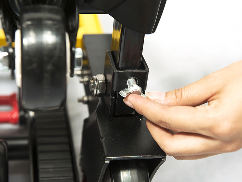 La barra de elevación de tres posición ayuda al operador de cualquier tamaño a mover el escalador de escaleras en las escaleras.